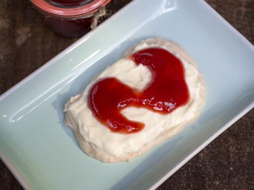 Franskbrød med lemoncurd og hindbærcurd (cremet)