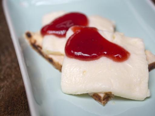 Franskbrød med smør, ost og marmelade (gratin)