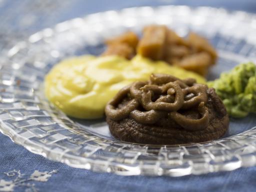 Glaseret hamburgerryg med stuvet grønlangkål, kartofler og bagte gulerødder (cremet)